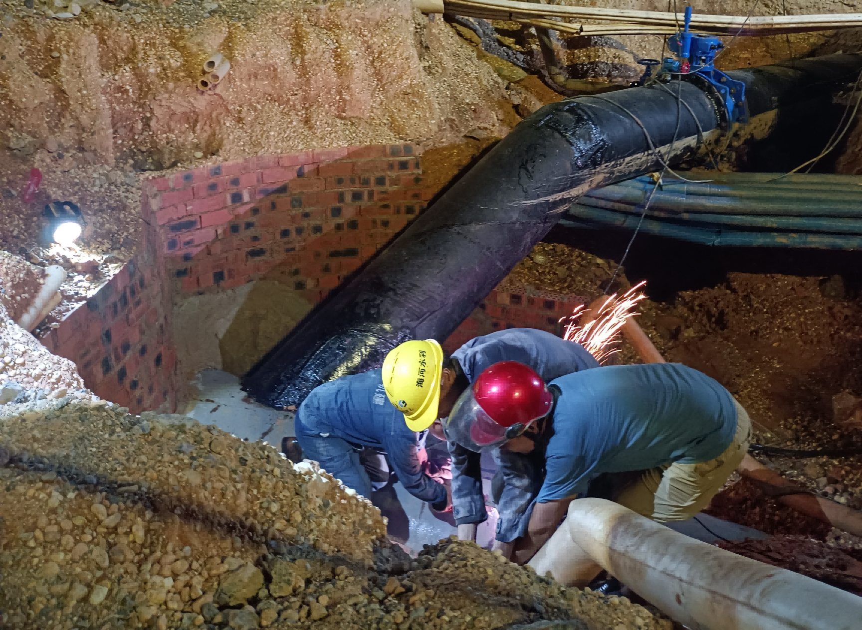 圖為綠城水務人員在進行低壓工程改造施工