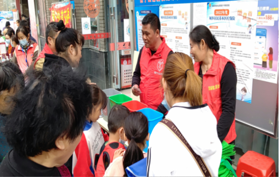 圖為五象水質(zhì)凈化廠黨支部在居民小區(qū)開展垃圾分類宣傳活動